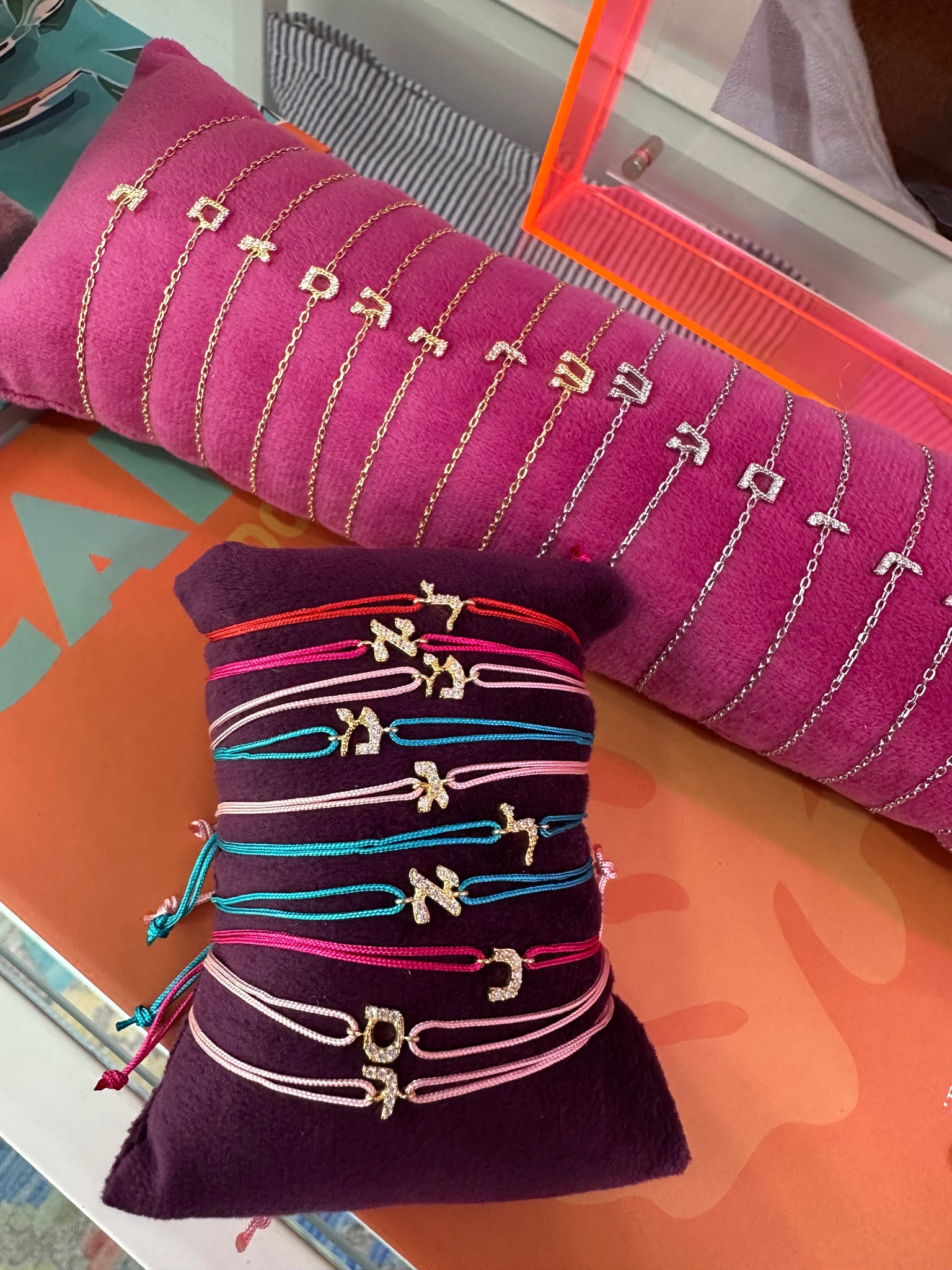 Bracelet with letter in hebrew.