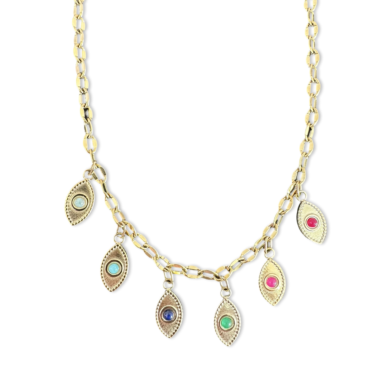 Chain necklace with lucky eyes.