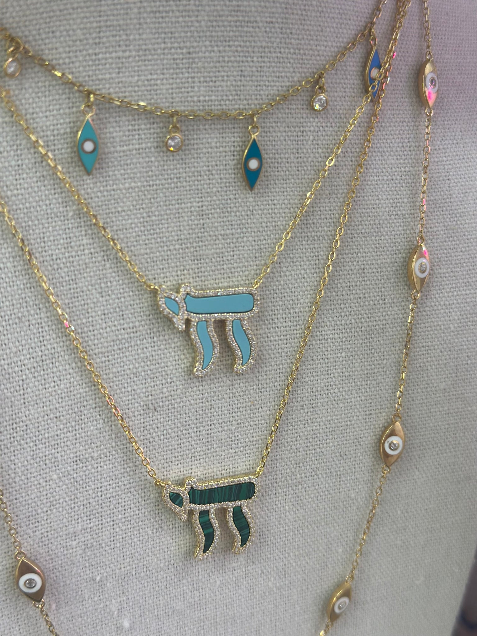 Necklace with lucky CHAI symbol, that in hebrew means life.