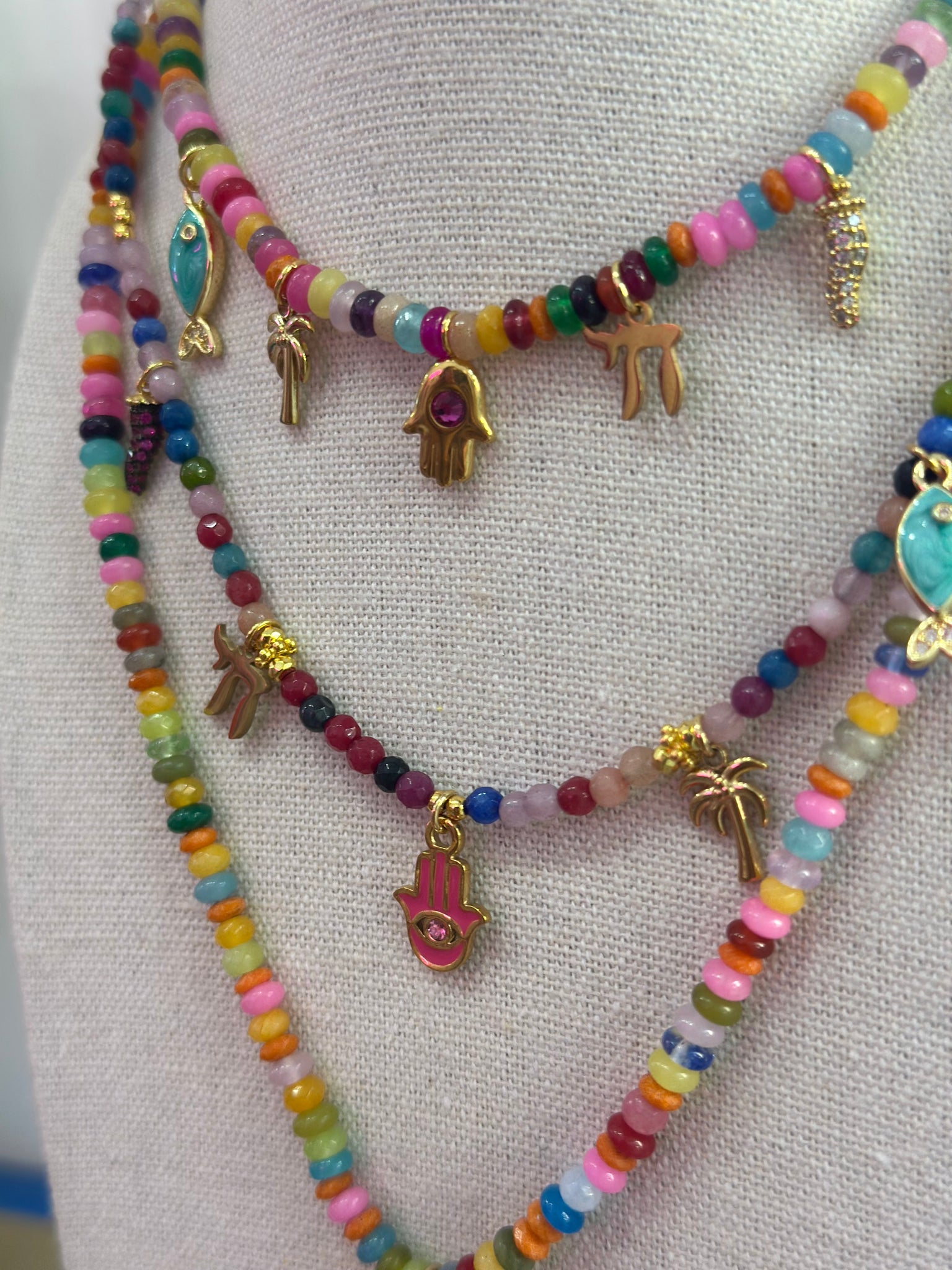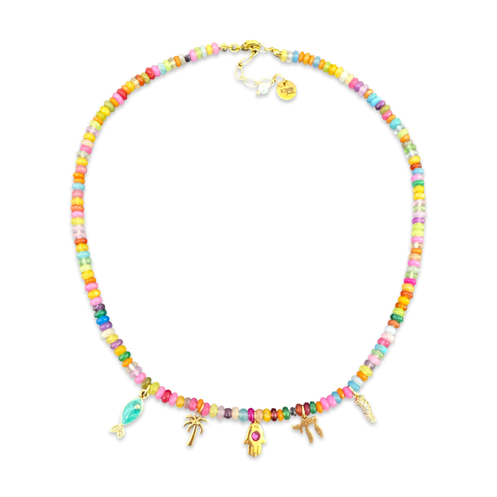 Beaded necklace with lucky charms.