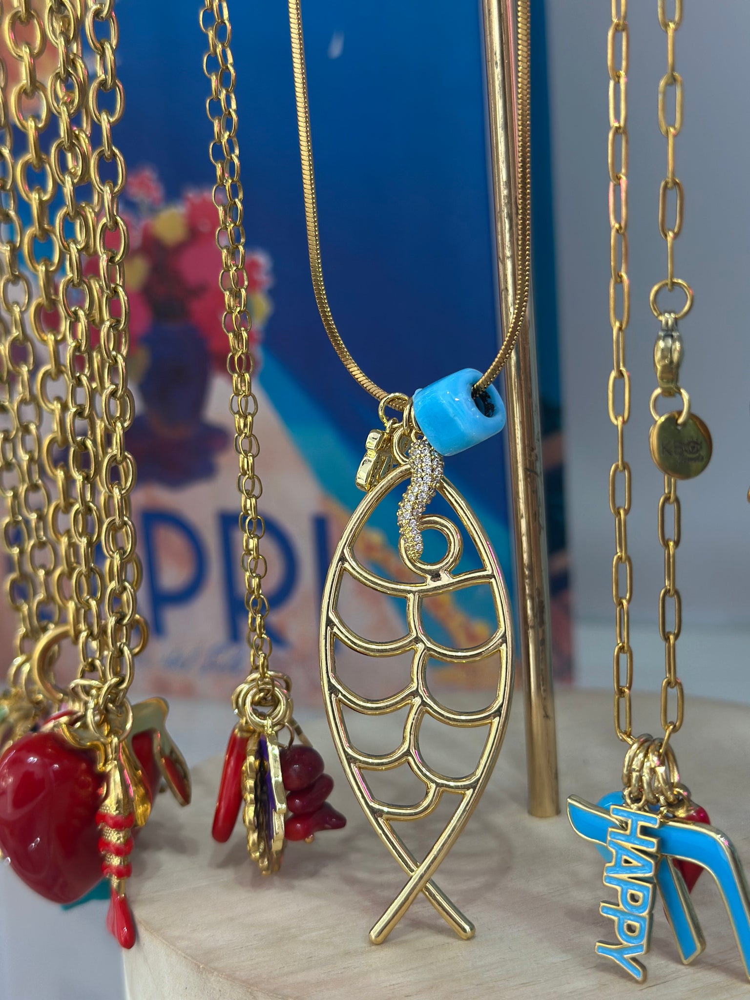 Chain necklace with lucky charms.